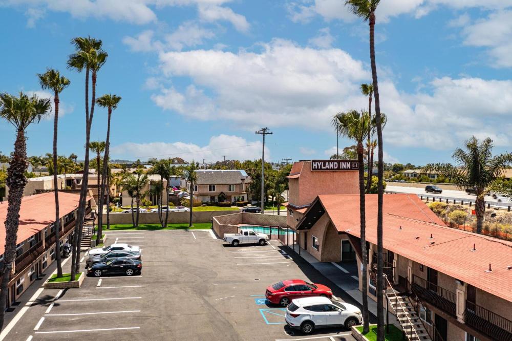 The gallery section of the Hyland Inn near Legoland showcases its comfort, convenience, and modern amenities. The gallery features the images of air-conditioned rooms with a microwave, refrigerator, and flat-screen television, and private bathrooms with a shower or bath, free toiletries, and towels. Other highlights of the gallery include an outdoor swimming pool, a designated smoking area, and free onsite private parking.